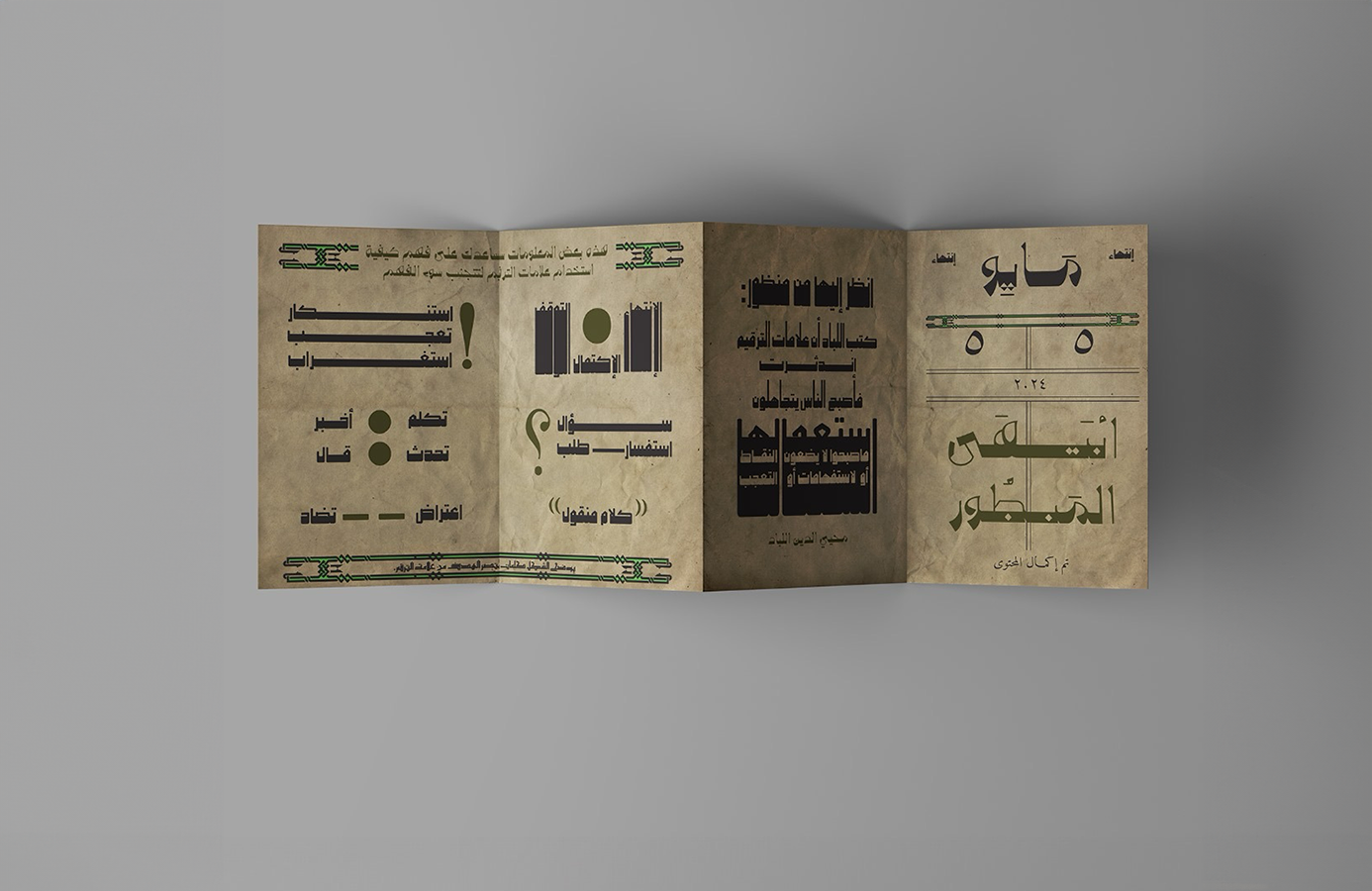 I designed a printed poster inspired by the book 'View,' focusing on punctuation marks. The design reflects both my perspective and that of the book's author. To evoke a sense of nostalgia, I chose a vintage mail theme, as letters were the first medium to utilize punctuation marks. The modern Naskh font was selected to emphasize the enduring significance of punctuation marks in contemporary communication. The light green color scheme was chosen to appeal to the target audience: young people aged 22 to 24 who are interested in Arabic typography.